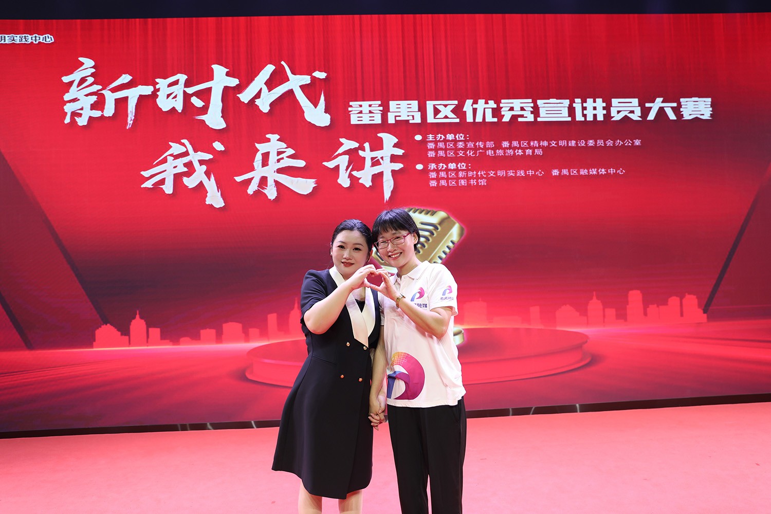 在“七一”建党节到来之际,6月30日上午,番禺区委宣传部、区文明办、区文广旅体局于番禺区图书馆联合举办“新时代 我来讲”番禺区优秀宣讲员大赛。来自大龙街欢创集团党支部的入党积极分子陈淼带来的演讲《创新人力资源服务,助力番禺高质量发展》荣获本次比赛二等奖。