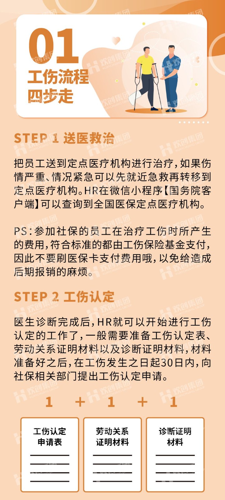 如果不清楚怎么处理,或者有些处理细节不太明白?别着急~欢创小编为大家整理好了工伤处理全流程攻略,建议收藏、转发。