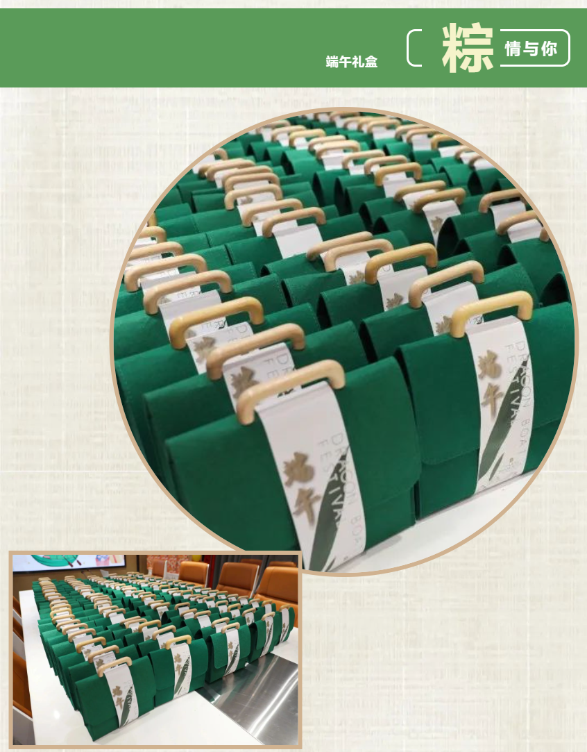 在活动现场,人事行政部的小姐姐们将承载着公司关怀的一份份端午礼盒发放到每位员工手中。心如糯米,越粘越紧;情如粽叶,越煮越香。大家的喜悦之情溢于言表,纷纷表示会将公司的关怀化为工作动力,继续为公司的高质量发展不懈奋斗。