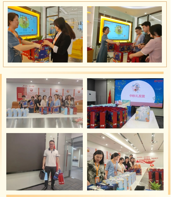 情暖中秋,爱在欢创。为表达对小伙伴们的关怀和感恩之情,感谢大家的辛勤付出,欢创集团为总部及各分子公司的小伙伴们都准备了精美的中秋礼盒,人事行政部的小姐姐们在幕后辛勤准备,精心挑选月饼礼盒,为节日的团聚锦上添花。同时,公司领导也为各位小伙伴送去的浓浓关爱和满满的祝福。